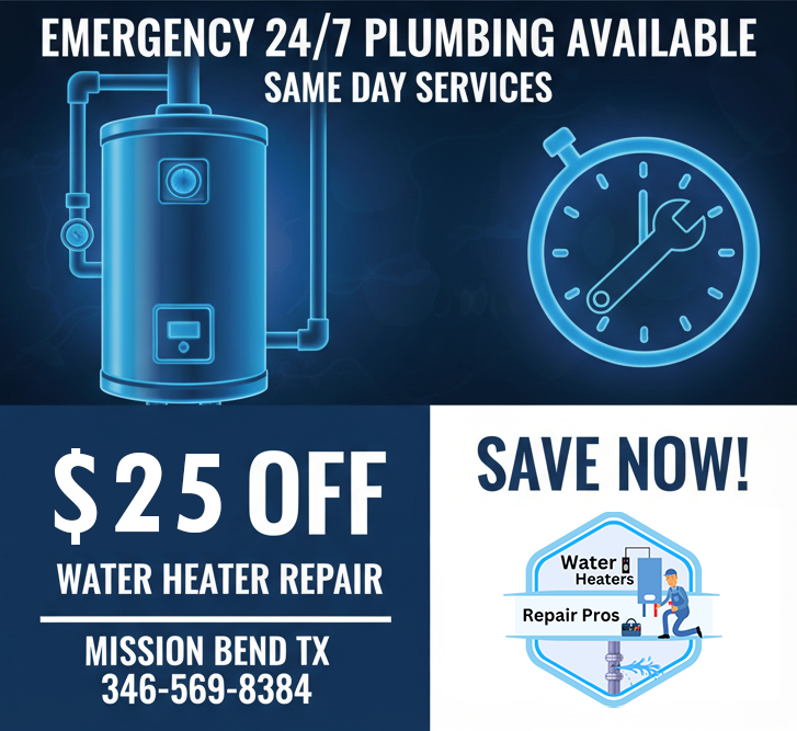 Every project completed by Water Heaters Repair Mission Bend Pros reflects professional handling, strong workmanship and trustworthy outcomes. We yield economical fixes for thermostat faults, seeps and ignition malfunctions backed by immediate and 24hour service for fortuitous breakdowns. All mendings meet local plumbing and safety regulations securing dependable operation for tankless, electric and gas heaters.